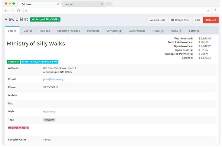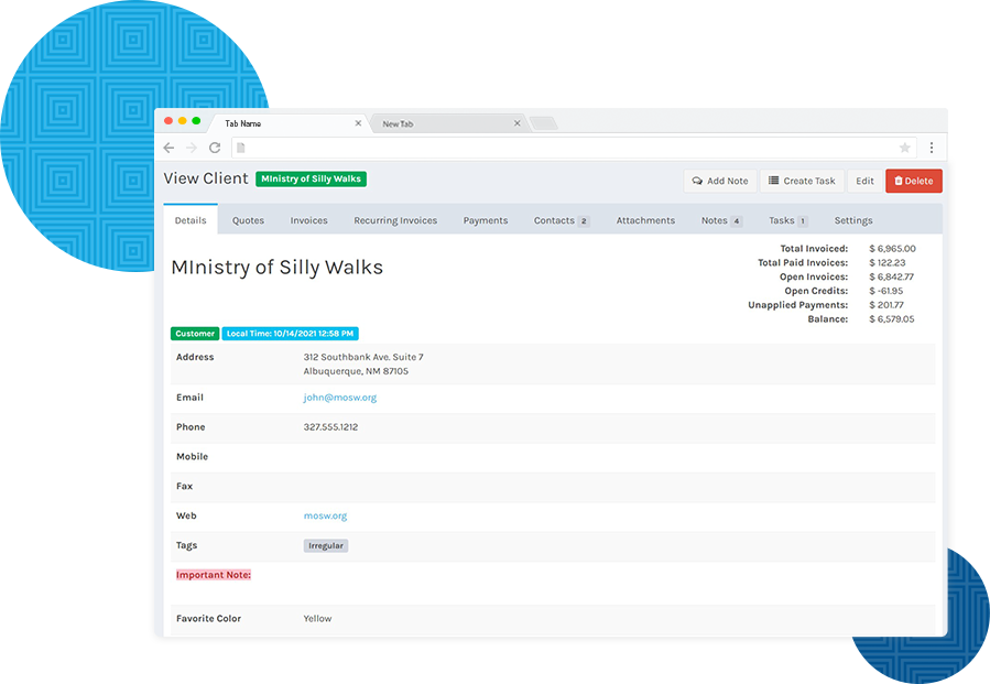 Your client information, including invoices, quotes, contact info, payments, and notes is all in one, easy to access place.