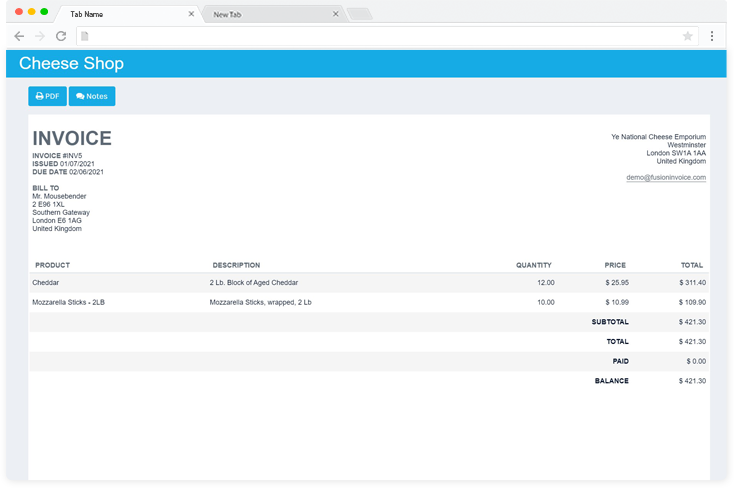 Use the default invoice or quote templates if you prefer, or you can create your own custom templates in any style that you would prefer.