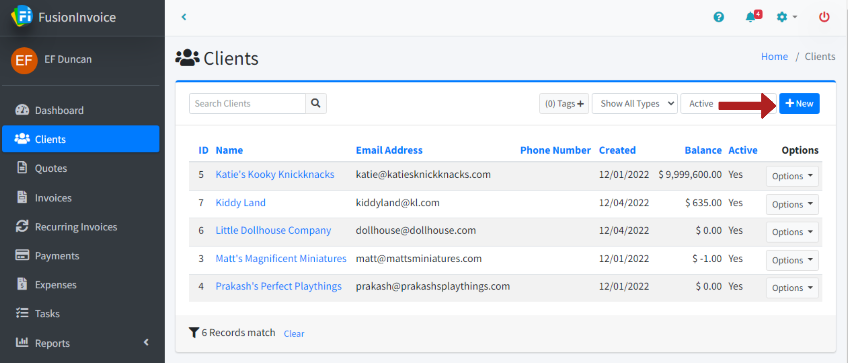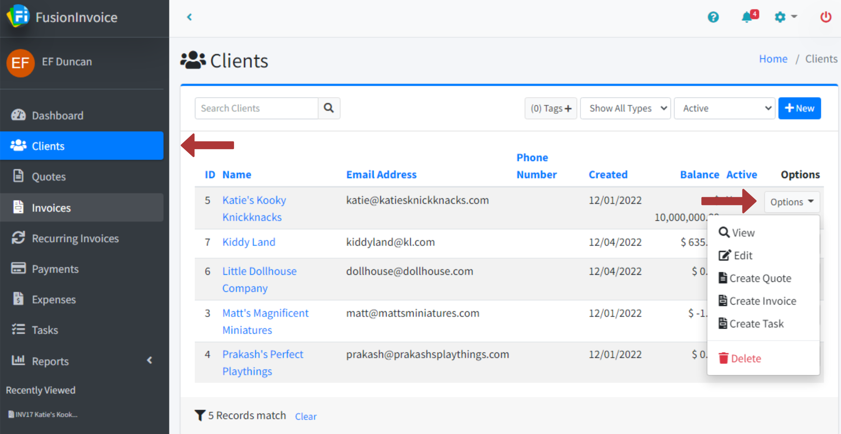 To do so, edit the client record by clicking the Clients menu item, and then pressing the Options button on the client to edit and choose "Edit".