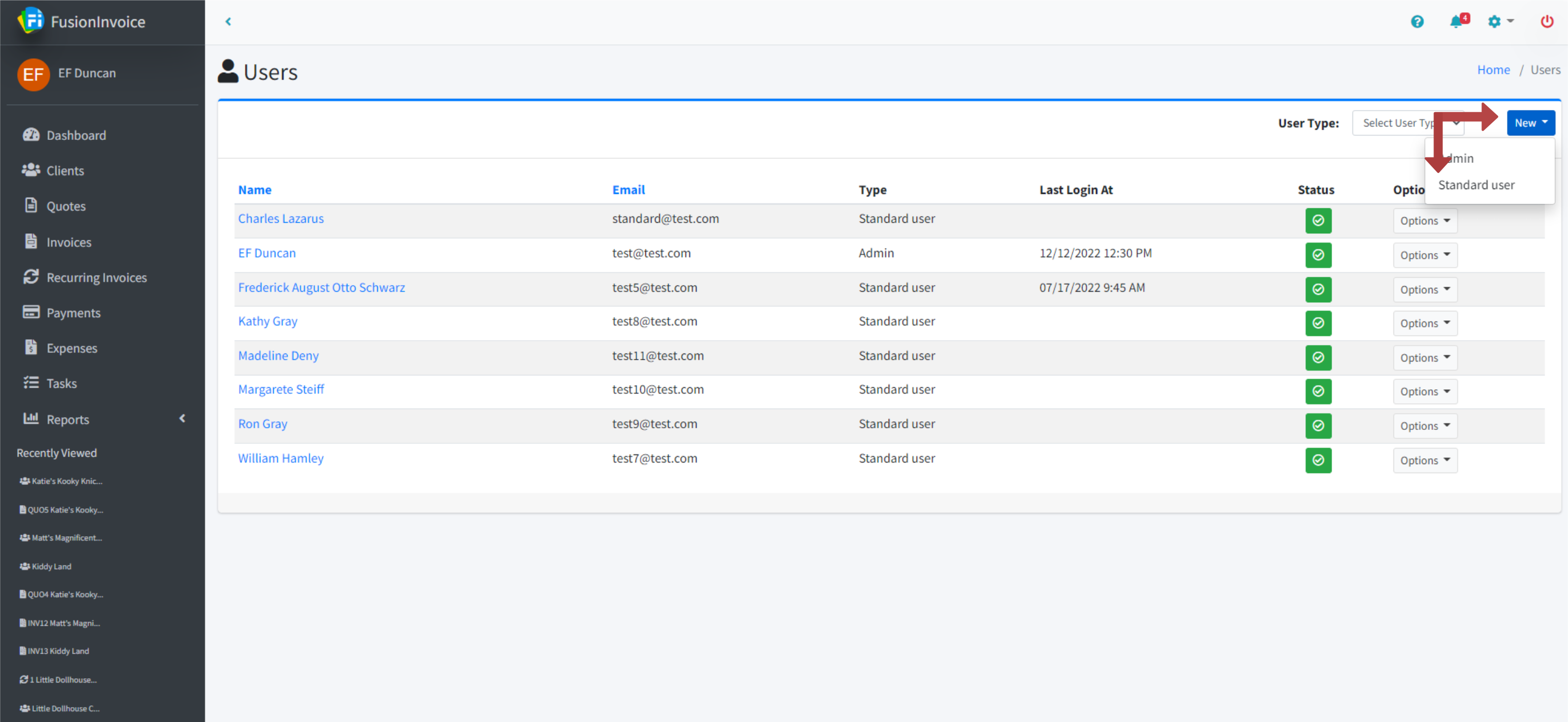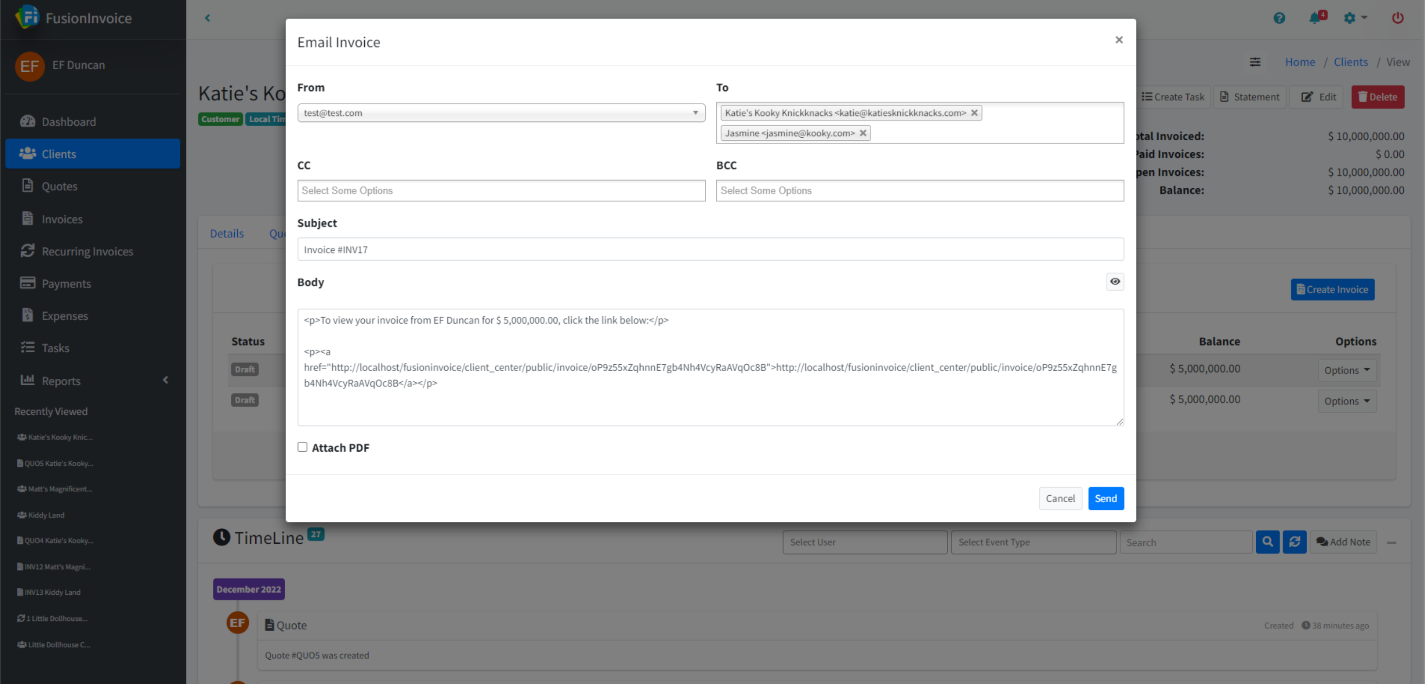 FusionInvoice provides a limited access client login feature called Client Center. The Client Center allows clients to log in and view their own invoices, quotes, and payments without being able to access anything else in your system.