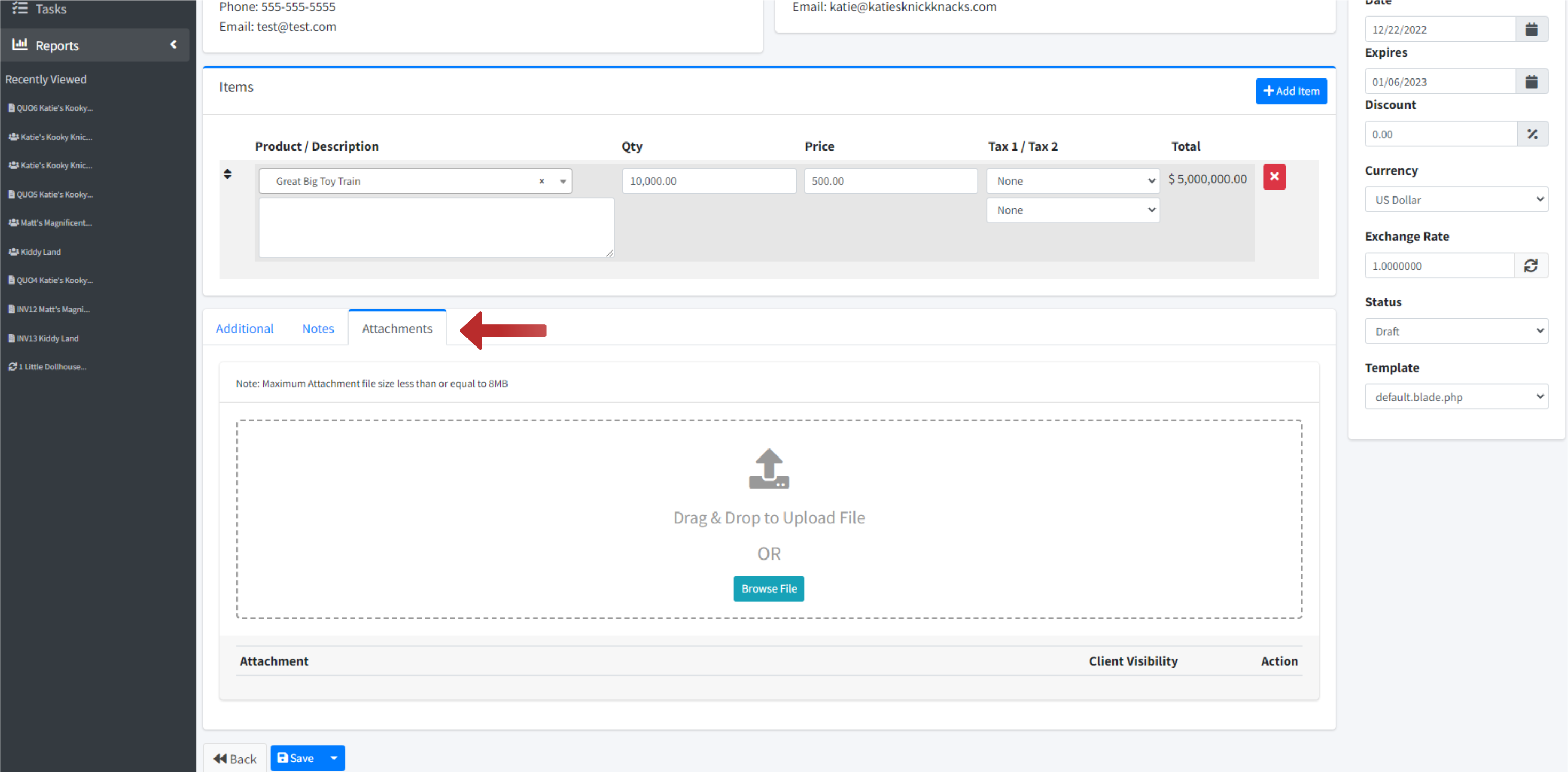 • Not Visible - Clients will not be able to access this attachment from the quote public link.