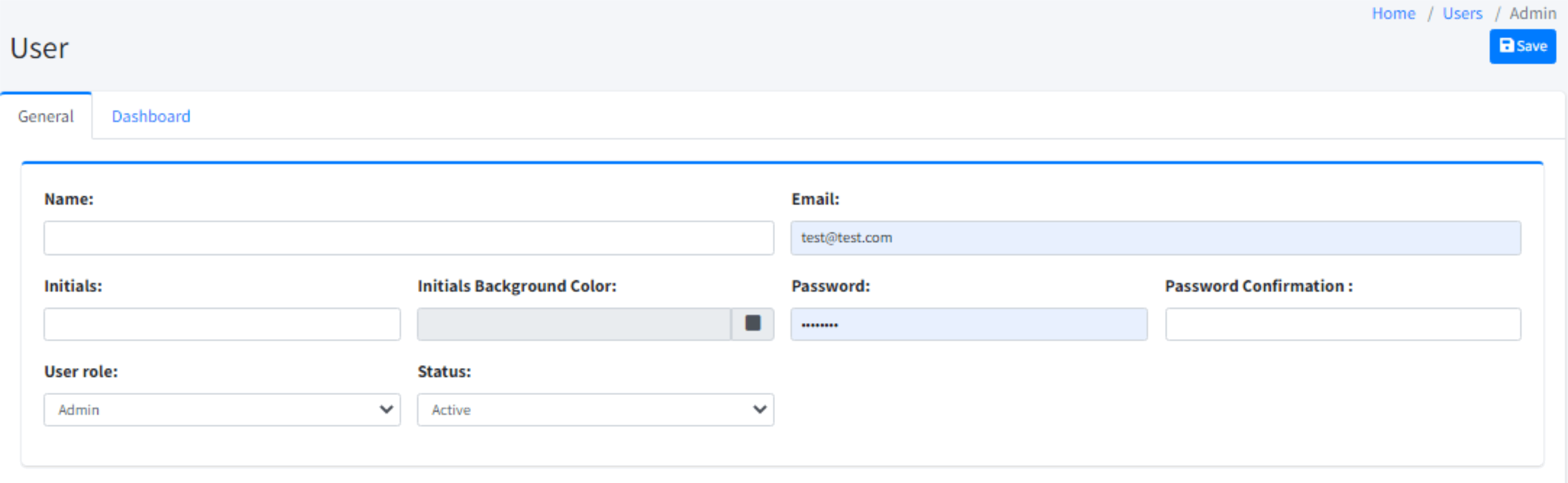 The user creation screen asks for some basic information about the user: Name, Email, and Password creation. You can also switch the user type if you selected the wrong one.