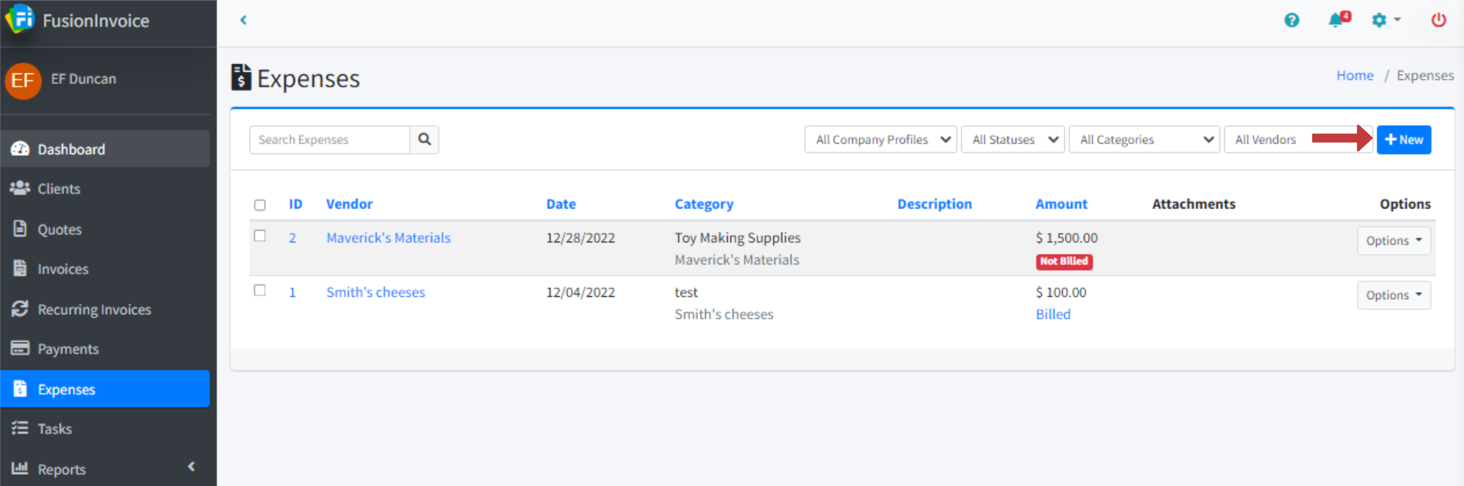Click the Expenses menu item and press the New button.