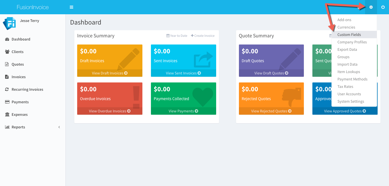• Custom Fields are segregated by their associated table, within separate tabs at the top of the page.