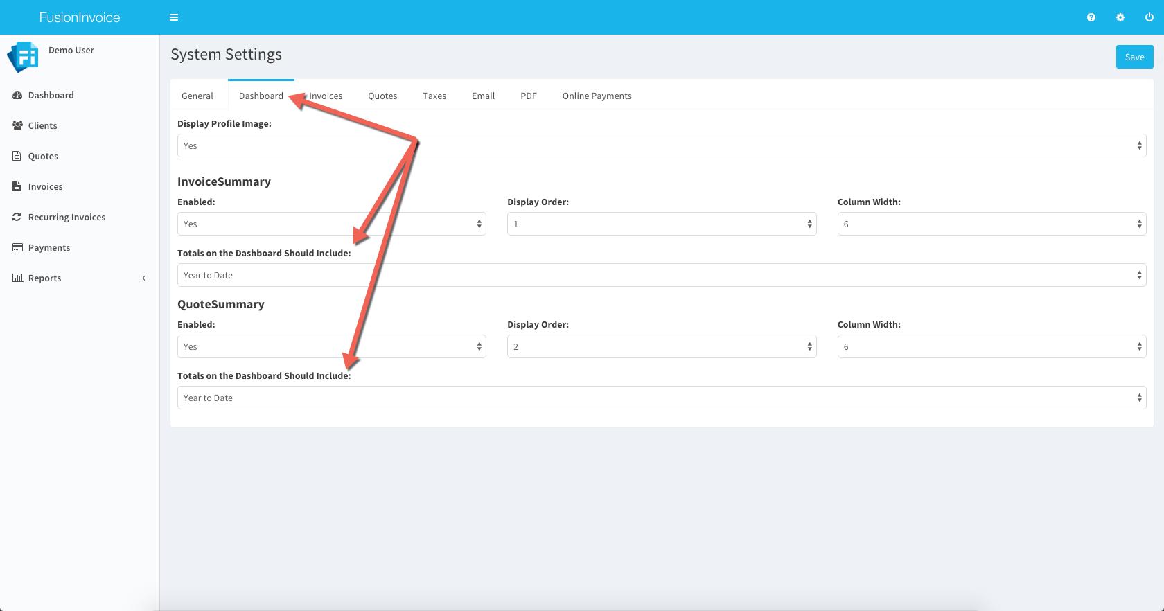 There are settings on the Dashboard tab of System Settings which control this behavior for both quotes and invoices. The default option is Year to Date. This can be changed to This Quarter, All Time, or Custom Date Range.
